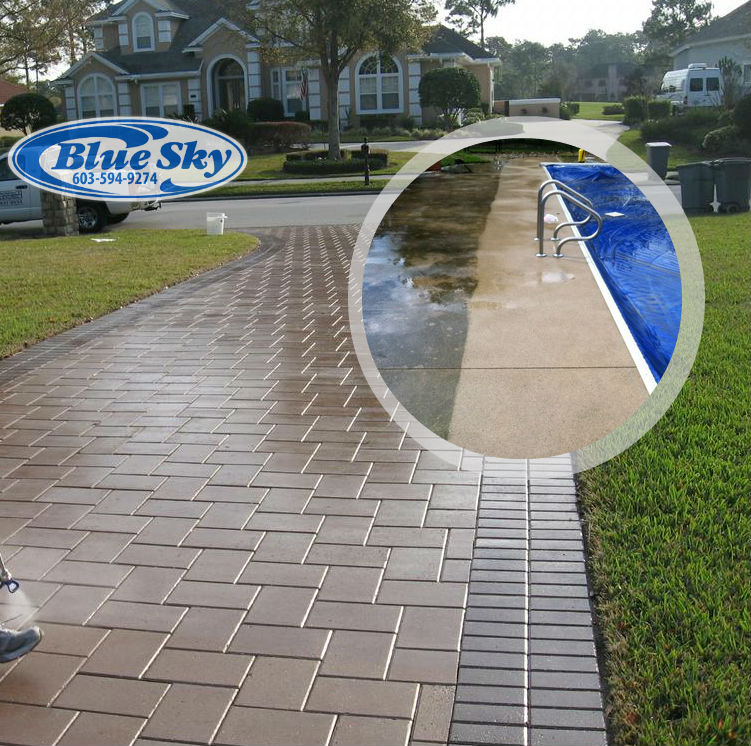 Residential and Commercial Exterior Cleaning • Roof Cleaning • Siding Power Washing • Concrete Driveways, Walkwalks, and Patios • Decks • Serving New Hampshire and Northern MA and Southern ME. Call Blue Sky today to schedule your free estimate 603-594-9274.